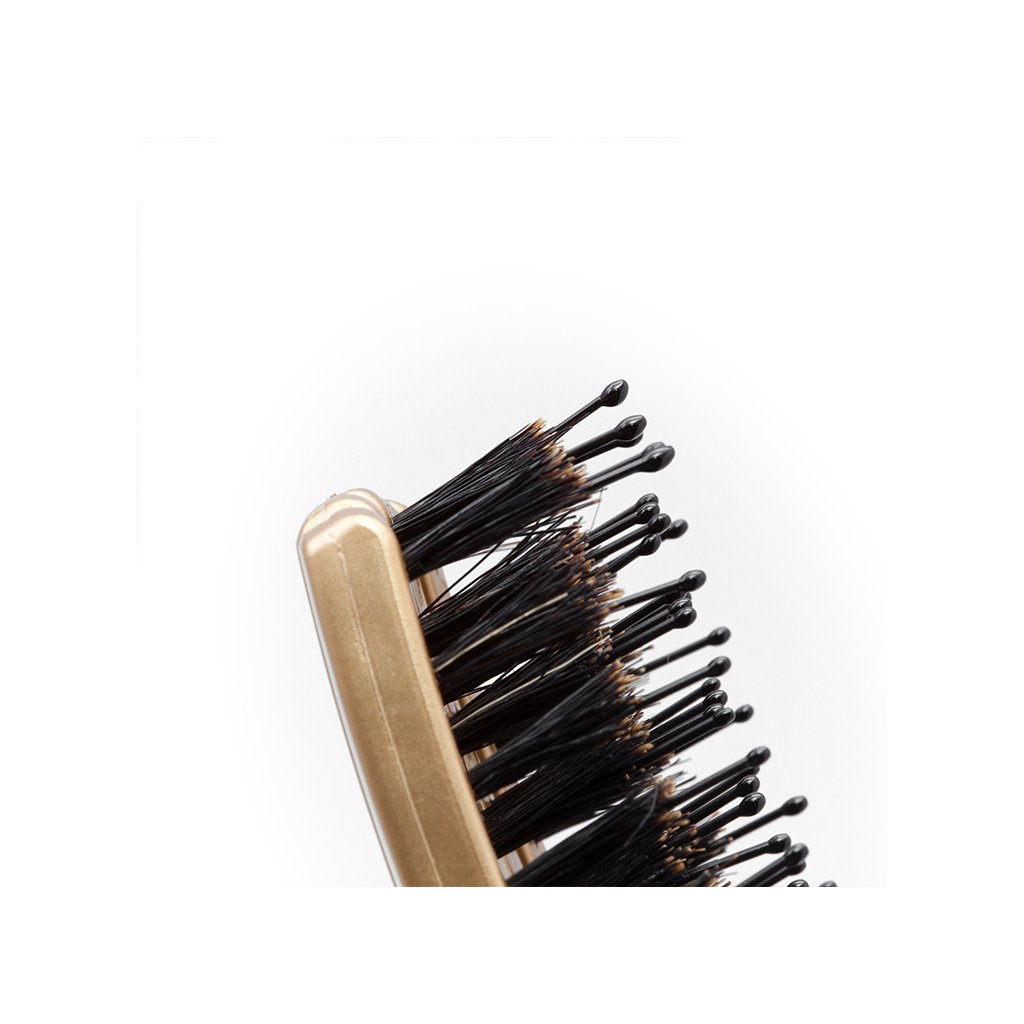 - Rozčesávání - Kombinace nylonových a divokých štětin pomáhá rovnoměrně rozložit vlasové oleje na pokožku hlavy, rozčesat je bez bolesti a lámavosti a dodat vlasům přirozený lesk.