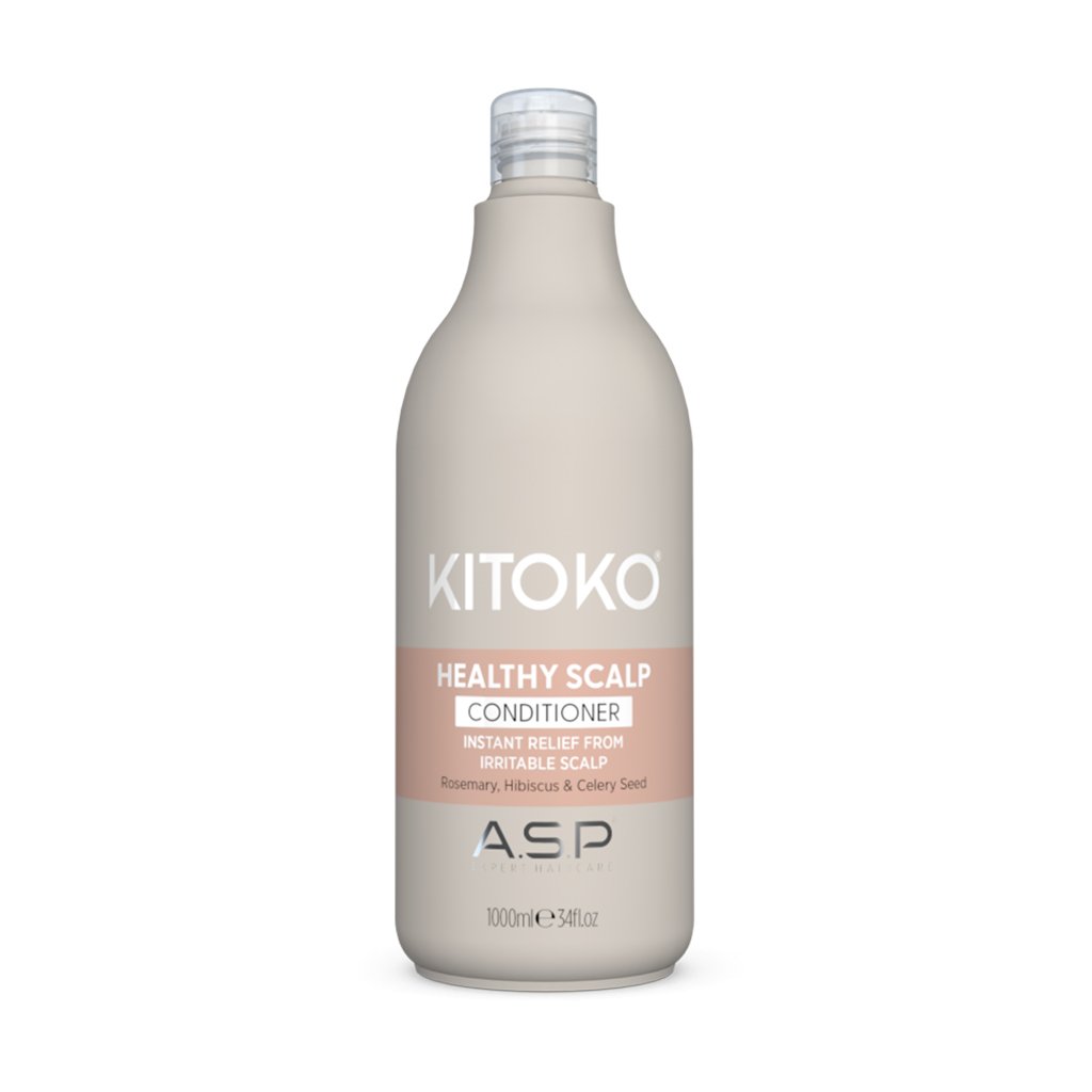 Pokračujte aplikací kondicionéru nebo tonika ASP Kitoko Healthy Scalp, které pomáhají uklidnit podrážděnou pokožku hlavy a obnovit její rovnováhu. Nechte působit několik minut a opláchněte vlažnou vodou (při použití tonika neoplachujte).