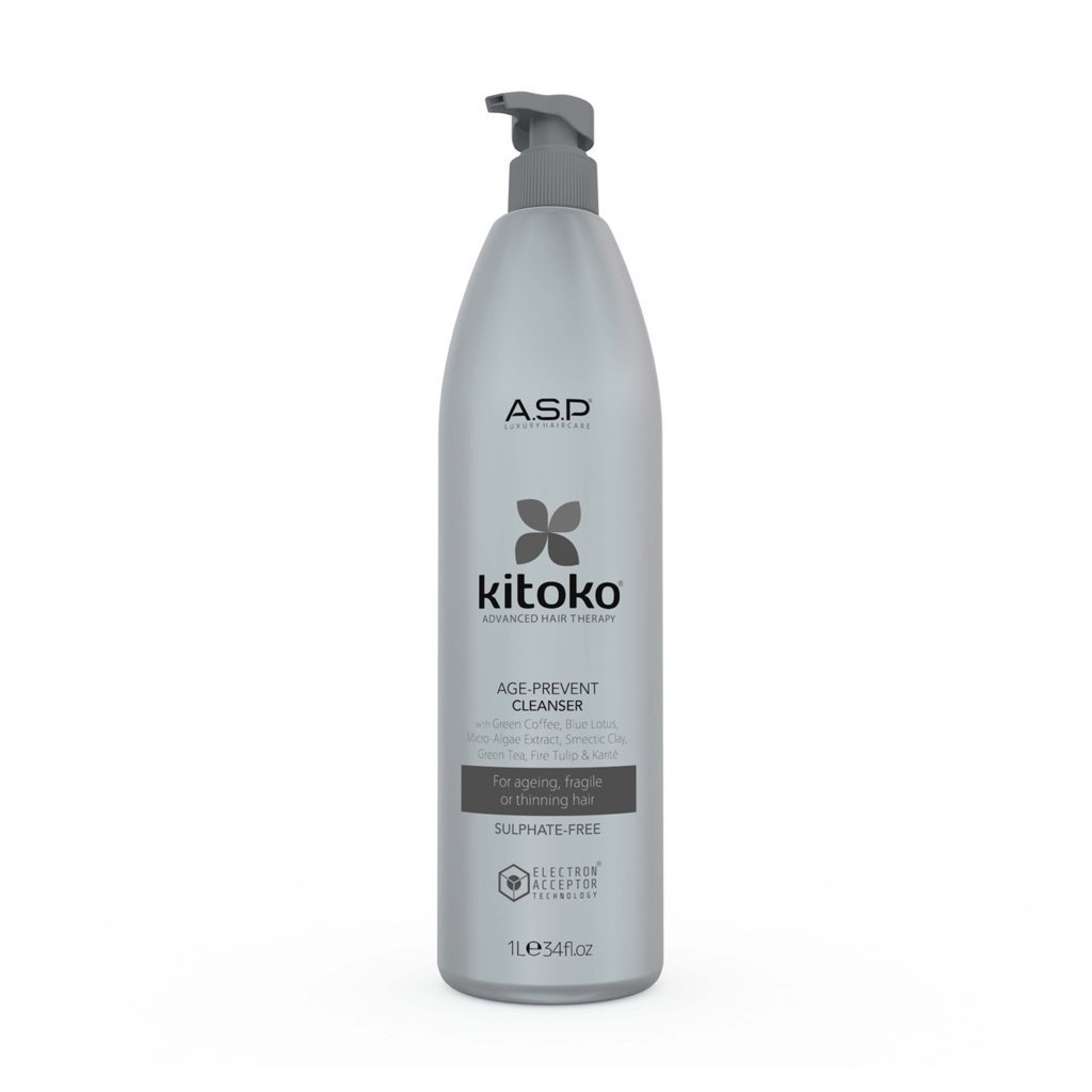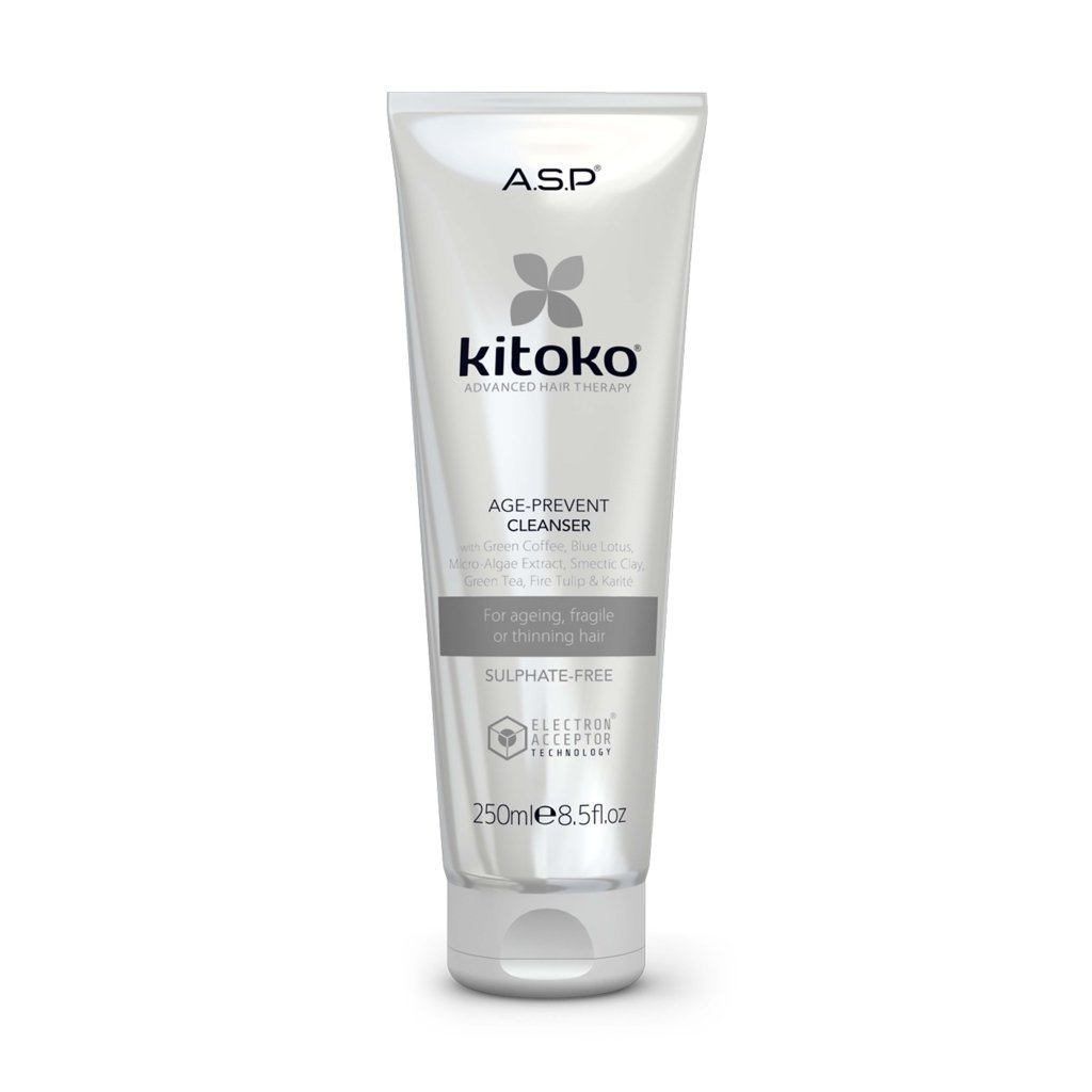Vlasy časem stárnou, čímž dochází k jejich postupnému oslabování a celkově ztrátě kondice. Tento proces nelze zcela zastavit, ale dá se s ním účinně bojovat. S použitím šamponu na vlasy ASP Kitoko Age Prevent dokážete vlasy skvěle vyživit a posílit. Děje se tak díky mnoha přírodním složkám, ze kterých musíme na prvním místě zmínit výtažky z micro řas, které podporují zdravý růst a brání vypadávání. Zelená káva s obsahem kofeinu zase stimuluje prokrvení pokožky, což vytváří zdravé prostředí pro růst silných a krásných vlasů. Modrý lotos také podporuje cirkulaci.
