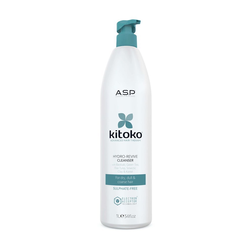 Šampon na vlasy ASP Kitoko Hydro Revive byl vyvinut, aby hydratoval a vyživoval suché, křehké a poškozené vlasy, přičemž je zanechává zdravé, pružné a nádherně zářivé. Je tvořen technologií elektronových přijímačů, která je obohacena silnými antioxidanty bojujícími proti volným radikálům a UV záření. Tím chrání nejen samotné vlasy, ale také citlivou pokožku hlavy.