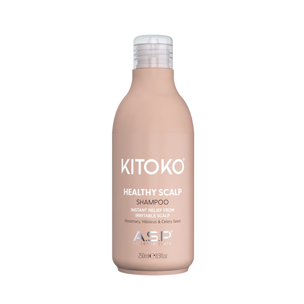 Okamžitá úleva od podrážděné pokožky hlavy. Zdravá pokožka hlavy je základem krásných vlasů. Kitoko Healthy Scalp linie kombinuje propándiol kaprylát s rozmarýnem, ibiškem a celerem, aby se zaměřila na běžné problémy jako jsou lupy, olupování, svědění, suchost a nadměrný maz.